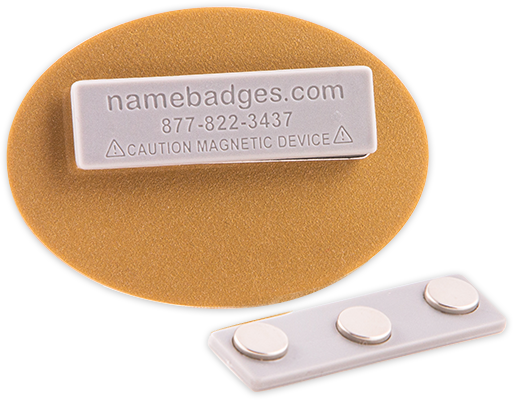 Magnetic fasteners can be added to most name badge for hassle-free on/off and damage-free clothing.